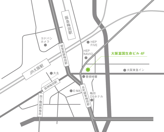阪急電車「梅田駅」2階中央改札口より徒歩 約5分